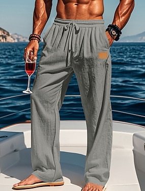 Pánské Plátěné kalhoty Kalhoty Letní kalhoty Plážové kalhoty Šňůrky Elastický pas Straight-Leg Bez vzoru Pohodlné Prodyšné Plná délka Ležérní Denní Dovolená prázdniny Módní Černá Bílá