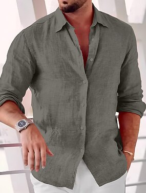 Pánské Košile Lněná košile Letní košile Oblečení na pláž Košile na knoflíky Bez vzoru Dovolená Ležérní Rubínově červená Vodní modrá Trávová zelená Šedá Dlouhý rukáv Přehnutý Léto Jaro léto Oblečení