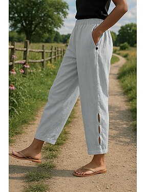 Dámské Imitace bavlny a lnu Letní kalhoty Základní Plná délka Vysoký pas Bez vzoru Kapsy Elastický pas Děrování Pohodlný Venkovní Pohodlné ulice Denní nošení Jdeme ven Bílá Modrá Khaki Šedá Léto Běžný