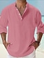 Pánské Lněná košile Popover košile Košile pro volný čas Plážová košile Košile s páskovým límečkem Bez vzoru Plážové Dovolená Vodní modrá Černá Bílá Světlá růžová Dlouhý rukáv Henley Jaro léto Oblečení