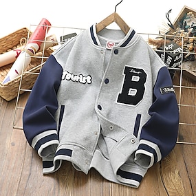 Děti Unisex Baseballové bundy Svrchní oděvy Barevné bloky Dlouhý rukáv Pohodlné Knoflíky Měkké Kabát Venkovní Módní Denní Vodní modrá Šedá Jaro Podzim 4 roky +