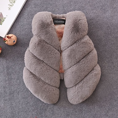 Děti Dívčí Umělý kožich Pevná barva Roztomilý Škola Kabát Svrchní oděvy 4 roky + Podzim Bílá Šampaňská Světlá růžová