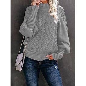 Dámské Svetr Pulovrový svetr Na běžné nošení Měkké Čistá barva Kabel Rolák Pletený Dlouhý rukáv Běžné topy Plést Venkovní Denní Víkend Fialová Meruňková Podzim Zima