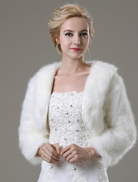 Bílé Umělé Kožešiny Šály Svatební Šály Zimní Kabáty Bundy Udržte se v teple Svatební Dlouhý Rukáv Umělé Kožešiny Podzimní Svatební Host Šály S Čistou Barvou Pro Svatební oblečte se aby zapůsobila