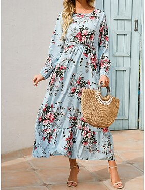 Dámské Maxi šaty Šifonové šaty Květinové šaty Šaty s potiskem Elegantní Módní Moderní Venkovní Dovolená Jdeme ven Běžný Květinový Dlouhý rukáv Do V Světle zelená Světlá růžová Námořnická modř Trávov