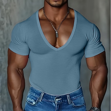 Pánské Tričko Tričko Top Krátký rukáv Do V Léto Bez vzoru Sportovní Módní Lehký Výstřih do V Dovolená Ležérní Tmavě šedá Černá Bílá Top tričko pro muže