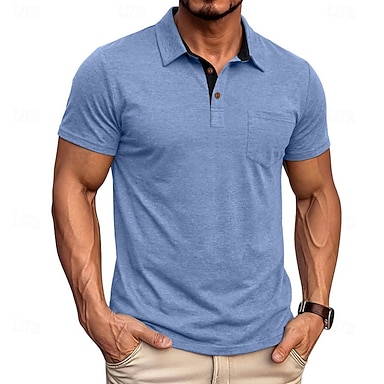 Pánské Polokošile Golfová košile Ležérní Obchod Klopa Krátký rukáv Módní Moderní Bez vzoru Kapsy Knoflíky Celý rok Vodní modrá Černá Bílá Námořnická modř Trávová zelená Khaki Polokošile