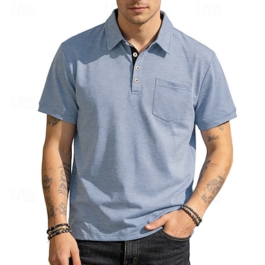 Pánské Pólo Polokošile Ležérní ulice Klopa Krátký rukáv Základní Moderní Bez vzoru Lehká váha Knoflíky Léto Jaro Běžný Černá Bílá Světle modrá Pólo