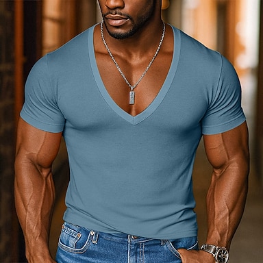 Pánské Tričko Svalová košile Tričko s žebrovaným úpletem Tričko Top Krátké rukávy Do V Léto Bez vzoru S texturou Pit Strip Módní Designové sportovní Rýhovaný Dovolená ulice Ležérní Světle modrá Čern