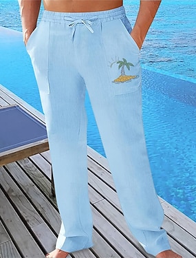 Pánské Plátěné kalhoty Kalhoty Letní kalhoty Plážové kalhoty Kapsy Šňůrky Elastický pas Bez vzoru Pohodlné Prodyšné Denní Dovolená Plážové Havajské Cikánský Jezerní modrá Vojenská zelená