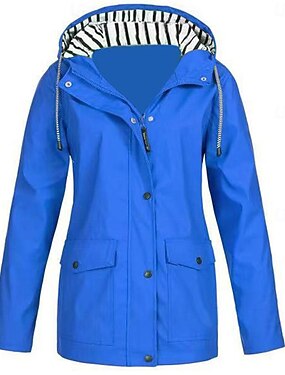 Dámské Šerpa bunda Pohodlné Prodyšné Kapsy Knoflíky Na běžné nošení Bez vzoru Dovolená ulice Ležérní Denní nošení Jednořadé Standardní Kapuce Běžný Dlouhý rukáv Svrchní oděvy Světle modrá Námořnick