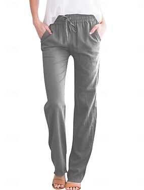 Dámské Bavlněné plátěné kalhoty Letní kalhoty Kalhoty prázdniny Základní Běžné Denní Plná délka Přírodní Bez vzoru Šňůrky Přední kapsa Pohodlné Prodyšnost Neelastické Denní Jdeme ven Víkend Vodn