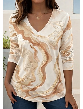 Dámské Tričko Tisk Grafika Abstraktní Vinobraní Módní stylové Dlouhý rukáv Do V Běžné topy Denní Vodní modrá Světlá růžová Fialová Trávová zelená Jaro Podzim