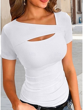 Dámské Tričko Tričko Top Děrování Bez vzoru Klasické Na běžné nošení Krátký rukáv Tričkový Běžné topy Denní Jdeme ven Víkend Černá Bílá Světlá růžová Fialová Tmavě šedá Léto Jaro