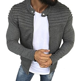 Pánské Lehká bunda Letní bunda Neformální bunda Dovolená Denní Zahřívací Kapsy Podzim zima Bez vzoru Módní Klasické Stojáček Standardní Černá Bílá Světle šedá Tmavě šedá Saka
