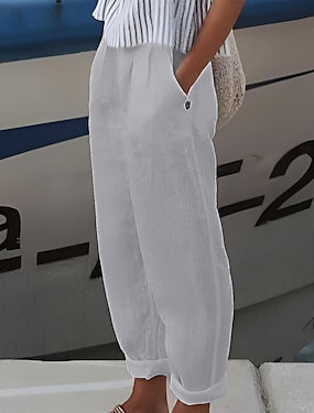 Dámské Imitace bavlny a lnu Kalhoty Letní kalhoty Šik ven Na běžné nošení Po kotníky Přírodní Bez vzoru Kapsy Venkovní Pohodlné ulice Jdeme ven Námořnická modř Černá Bílá Světle zelená Léto Běžný