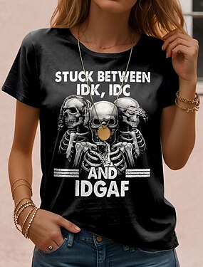 Dámské Tričko Tisk Grafika Lebky Písmeno Vinobraní stylové Na běžné nošení Krátký rukáv Tričkový Běžné topy Denní Jdeme ven Víkend Vodní modrá Černá Trávová zelená Šedá Léto