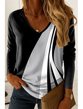 Dámské Tričko Tisk Grafika Proužky Geometrie Vinobraní stylové Klasické Dlouhý rukáv Do V Vroubkovaný krk Běžné topy Denní Víkend Prašná růže Jaro Podzim Zima