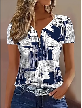 Dámské Tričko Zip Čtvrtletní zip Grafika Geometrický Abstraktní Tropický vzhled Havajské stylové Krátký rukáv Tričkový Běžné topy Denní Sport Jdeme ven Vodní modrá Léto Jaro