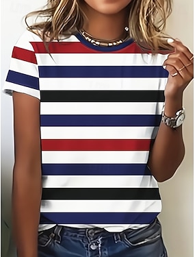 Americký den nezávislosti Dámské Tričko Tisk Grafika Geometrický Abstraktní stylové Klasické Na běžné nošení Krátký rukáv Tričkový Běžné topy Ležérní Denní Rubínově červená Léto Jaro