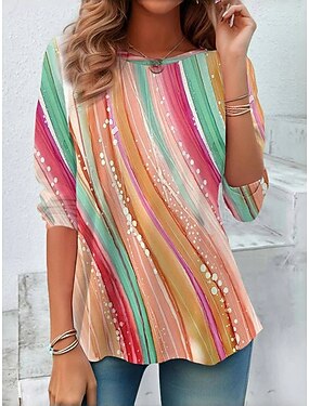 Dámské Tričko Tisk Grafika Proužky Čechy Havajské stylové Krátký rukáv Tričkový Běžné topy Denní Vodní modrá Světlá růžová Oranžová Trávová zelená Léto Jaro