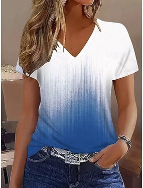 Dámské Tričko Tisk Proužky Grafika Proužky stylové Klasické Na běžné nošení Krátký rukáv Do V Běžné topy Denní Posilovna Sport Vodní modrá Duhová Léto Jaro