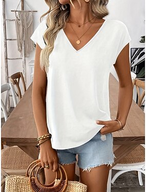 Dámské Tričko Tričko Top Bez vzoru Módní stylové Klasické Krátký rukáv Do V Běžné topy Denní Jdeme ven Víkend Vodní modrá Černá Bílá Světlá růžová Fialová Léto Jaro