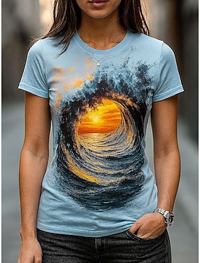 Dámské Tričko Tisk Tónované Grafika Oceán Vinobraní stylové Klasické Krátký rukáv Tričkový Kulatý Běžné topy Denní Víkend Vodní modrá Léto Jaro