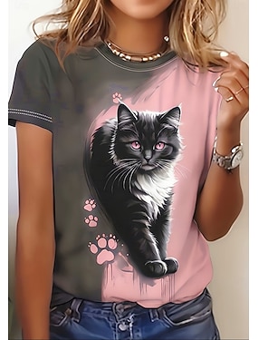 Velikonoce Dámské Tričko Tisk Grafika Zvíře Komiks Módní stylové Klasické Krátký rukáv Tričkový Běžné topy Denní Víkend Vodní modrá popel Černá Bílá Světlá růžová Léto Jaro