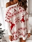 Dámské Mini šaty Šaty z polybavlněného plátna s texturou Svetrové šaty Moderní Vánoce Venkovní Dovolená Běžný Květinový Dlouhý rukáv Tričkový Bílá Rubínově červená Podzim Zima