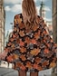 Dámské Mini šaty Šaty z polybavlněného plátna s texturou Svetrové šaty Moderní Vánoce Venkovní Denní Běžný Květinový Dlouhý rukáv Tričkový Černá Rubínově červená Šedá Podzim Zima
