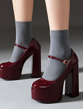 dámská vínová lakovaná platforma mary jane heels - robustní vysoké blokové podpatky s nastavitelným páskem na párty nebo módní události