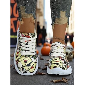 Dámské nazouvací tenisky s potiskem čarodějnic a pohodlným odpružením, ležérní boty na halloweenský festival na kostýmní párty i každodenní nošení