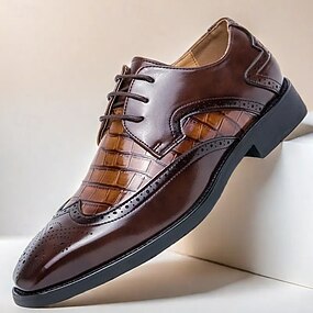 pánské hnědé oxfordky z umělé kůže s krokodýlím vzorem a brogue detaily – elegantní společenské boty pro formální události a kancelářské oblečení