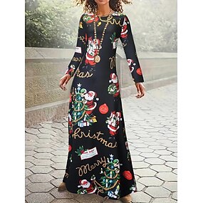 Dámské Maxi šaty Tričkové šaty Áčkové šaty Letní šaty prázdniny Na běžné nošení Plážový styl Denní Běžný Grafika Ježíšek Vánoční stromek Dlouhý rukáv Tričkový Černá Béžová Jaro Podzim Zima