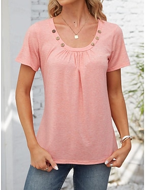 Dámské Tunika Knoflíky Bez vzoru stylové Krátký rukáv Tričkový Běžné topy Denní Bílá Světlá růžová Khaki Šedá Léto Jaro Podzim