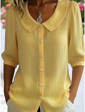 Dámské Tričko Bavlněné plátěné tričko Tričko Top Knoflíky Bez vzoru Módní stylové Klasické Krátký rukáv Tričkový Běžné topy Denní Jdeme ven Víkend Vodní modrá Bílá Žlutá Armádní zelená Námořnická modř