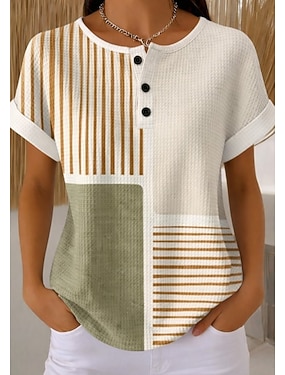 Dámské Tričko Tisk Proužky Grafika Geometrický Proužky Čechy Vinobraní stylové Krátký rukáv Tričkový Běžné topy Denní Vodní modrá popel Bílá Žlutá Světlá růžová Léto Jaro