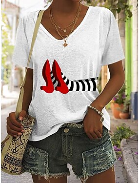 Dámské Tričko Barevné bloky Tisk Grafika Zvíře Abstraktní Vinobraní stylové Klasické Krátký rukáv Do V Běžné topy Denní Víkend Vodní modrá Černá a červená Bílá červená Léto Jaro Podzim