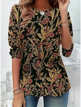 Dámské tričko dlouhý rukáv kulatý výstřih dlouhý rukáv tunika květinová grafika rostliny vintage stylové klasické kulatý výstřih pravidelné topy každodenní potisk žlutá červená modrá fialová zelená