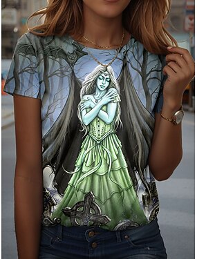 Witch Cross od Sarah Richter dámské tričko s potiskem vintage stylové klasické krátký rukáv kulatý výstřih běžné topy každodenní potisk modrá zelená khaki léto jaro podzim