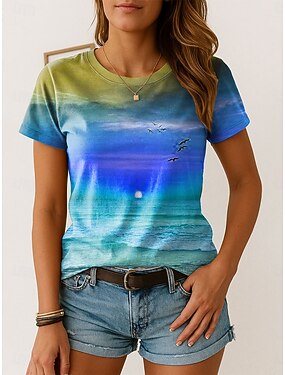 Dámské Tričko Tisk Tónované Grafika Abstraktní Čechy Havajské stylové Krátký rukáv Tričkový Běžné topy Ležérní Denní Vodní modrá Světlá růžová Fialová Trávová zelená Léto Jaro