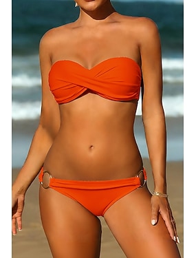 Dámské bikiny 2-dílné plavky thong úzké bez ramínek dovolená plážové oblečení jednobarevné kulatý výstřih bez rukávů
