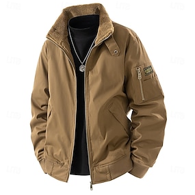 Pánské Lehká bunda Nákladní bunda Neformální bunda Dovolená Denní Zahřívací Kapsy Podzim Zima Bez vzoru Módní Klasické Stojáček Standardní Světlá khaki Khaki Saka