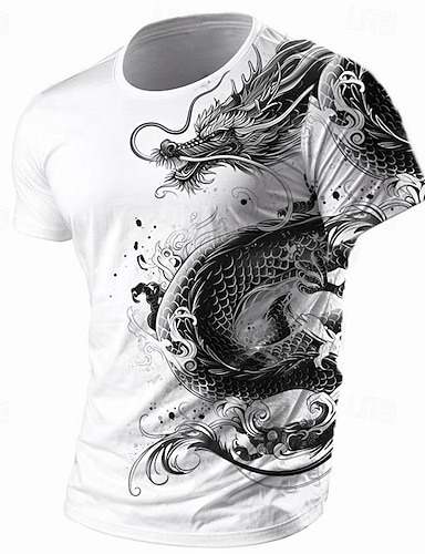 Pánské Grafika Zvíře Drak Tričko Krátký rukáv tričko 3D tisk Tričkový Košile Retro Na běžné nošení Subkultůra Outdoorové sporty Dovolená Jdeme ven Bílá Fialová Hnědá Jaro léto Oblečení S M L XL 2XL