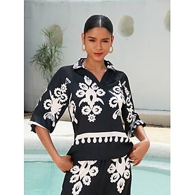 Dámské Žena Košile s knoflíkem Košile pro volný čas Ležérní Trička Meruňková Knoflíky Tisk Krátký rukáv Elegantní Čechy prázdniny Košilový límec Léto