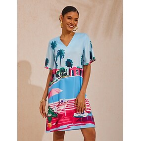 Dámské Mini šaty Imitace bavlny a lnu Áčkové šaty Na běžné nošení Denní Volný Bez vzoru Krátký rukáv Do V Vodní modrá Bílá Fialová Armádní zelená Léto Jaro