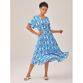 Žena Šaty ke kolenům Rubínově červená Krátký rukáv Poloviční rukáv Polodlouhé rukávy Abstraktní Zvířecí Květinový Léto Jaro Jaro léto Do V Hluboké V prázdniny Prohlášení Cikánské S M L