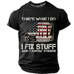 To je to, co dělám, opravuji věci a vím, co se v nich dá dělat. Pánské tričko s americkou vlajkou, nářadí pro kutily, vlastenecké, zoufalé, s potiskem, vtipné, mechanik, krátký rukáv, kulatý výstřih,