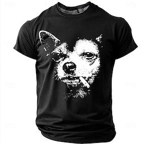 Pánské tričko s potiskem čivavy, kouření cigaret, drsný streetwear, vtipné meme, grafické, regular střih, thug life, zlý pes, ležérní, denní, značkové oblečení, velikost S M L XL XXL XXXL